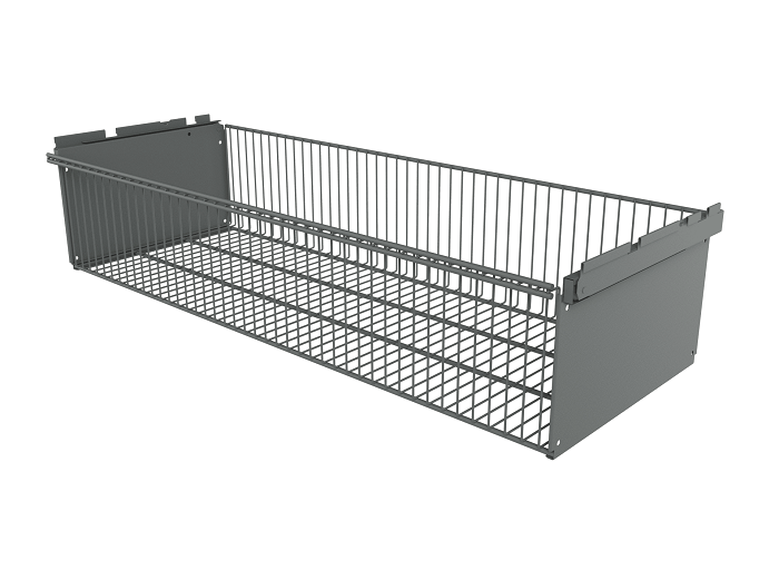 Корзина выдвижная Титан GS предназначена для установки на гардеробную систему. Изготовлена из проволоки, такой же как и сетчатые полки Титан GS. Учитывая крупноячеистую структуру, выдвижные корзины являются отличным вариантом для хранения одежды, поскольку обеспечивается отличная вентиляция вещей. Корзина выдерживает до 35 кг при ее равномерном распределении. Устанавливается на кронштейны полок Титан GS (в комплект не входят). Покрытие: порошково-полимерное, гипоаллергенное и устойчивое к механическому воздействию. Цвет: серебристый.