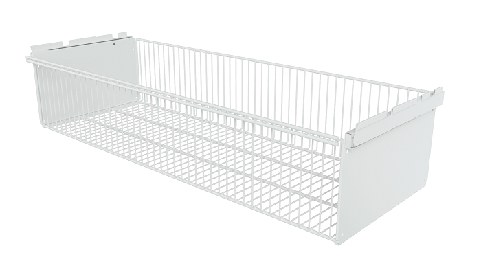 Корзина выдвижная Титан GS предназначена для установки на гардеробную систему. Изготовлена из проволоки, такой же как и сетчатые полки Титан GS. Учитывая крупноячеистую структуру, выдвижные корзины являются отличным вариантом для хранения одежды, поскольку обеспечивается отличная вентиляция вещей. Корзина выдерживает до 35 кг при ее равномерном распределении. Устанавливается на кронштейны полок Титан GS (в комплект не входят). Покрытие: порошково-полимерное, гипоаллергенное и устойчивое к механическому воздействию. Цвет: белый
