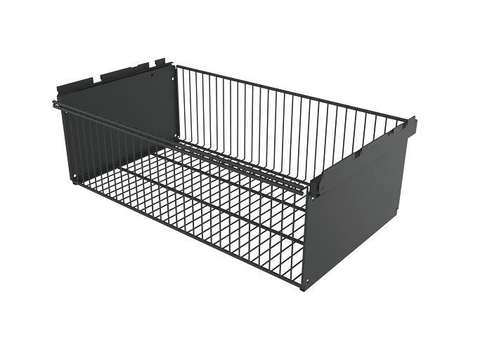 Корзина выдвижная Титан GS предназначена для установки на гардеробную систему. Изготовлена из проволоки, такой же как и сетчатые полки Титан GS. Учитывая крупноячеистую структуру, выдвижные корзины являются отличным вариантом для хранения одежды, поскольку обеспечивается отличная вентиляция вещей. Корзина выдерживает до 35 кг при ее равномерном распределении. Устанавливается на кронштейны полок Титан GS (в комплект не входят). Покрытие: порошково-полимерное, гипоаллергенное и устойчивое к механическому воздействию. Цвет: черный