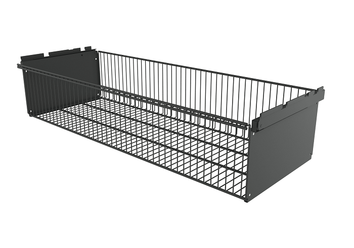 Корзина выдвижная Титан GS предназначена для установки на гардеробную систему. Изготовлена из проволоки, такой же как и сетчатые полки Титан GS. Учитывая крупноячеистую структуру, выдвижные корзины являются отличным вариантом для хранения одежды, поскольку обеспечивается отличная вентиляция вещей. Корзина выдерживает до 35 кг при ее равномерном распределении. Устанавливается на кронштейны полок Титан GS 435 (в комплект не входят). Покрытие: порошково-полимерное, гипоаллергенное и устойчивое к механическому воздействию. Цвет: черный