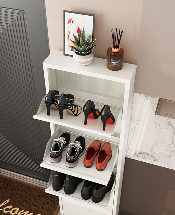Обувница Практик ОМ-4 белая предназначена для хранения обуви. Обувница состоит из четырех отделений, каждое отделение вмещает 2 пары обуви (до 43 размера). Изготовлена из стали, поставляется в собранном виде. Цвет: белая Ral 9003. Тип покрытия: порошковое