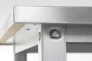Каркас стола разборный, собирается при помощи болтов. Возможна фиксация деталей каркаса при сборке. Изготовлен из оцинкованной стали толщиной 1,5 мм. Ножки каркаса выполнены из гнутого углового профиля с подгибами и базирующими пуклевками. Оснащены усиленными стальными подпятниками, регулируемыми полиамидными опорами ножек.