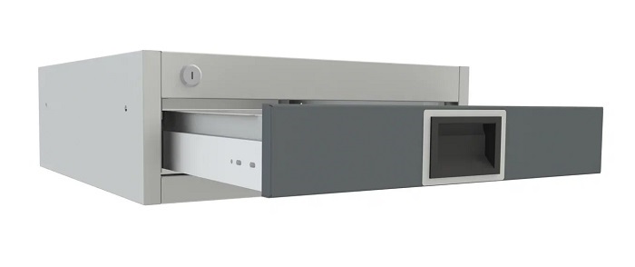 Ящик комплектуется одним выдвижным ящиком. Ящик установлен на телескопические направляющие полного выдвижения (50000 циклов открывания).