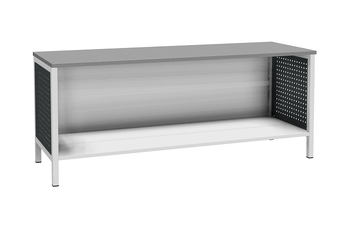 Цвет верстака: серый Ral 7038, панель облицовочная антрацит Ral 7016. Тип покрытия: эпоксидная порошковая краска. Поставляется в разобранном виде